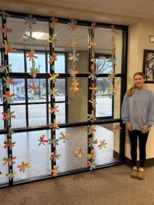 Students in the high school took part in creating Kindness Flowers.  Students wrote kind words about themselves or someone else on paper petals.  Flowers were created and linked and displayed in the lobby.